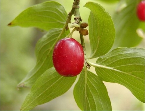 Zcela vyvinuté, vybarvené, ale nikoliv zcela zralé dřínky