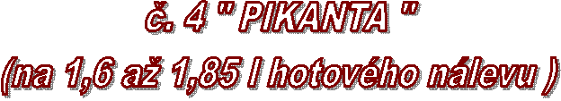 1. dáme 1,2 - 1,4 l vody , přisypeme balíček ( 200 gr ) směsi "Pikanta" a mírně povaříme asi 5 minut. Pak přidáme 4,5 dcl octa a odstavíme.