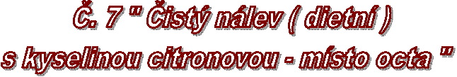 --- 0,75 litru vody, 3 dkg soli, 4 ks sacharinů, 0,25 litru 8% octa.
